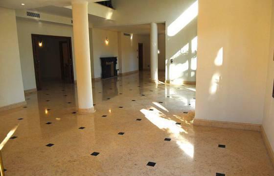 Первый этаж: просторный зал с высокими потолками, гостевой туалет, кухня, гостиная с 2 зонами отдыха с античным камином и столовая, крытое крыльцо и открытая терраса ведущие в красивый сад с большими пальмами и к бассейну (с подогревом).