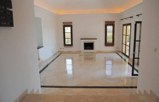 Вилла выходит на юго-западную сторону и состоит из: прихожая; гостиная с высоким потолком, камином и с прямым выходом на крытую террасу; гардеробная; спальня с ванной комнатой; три спальни и две ванные комнаты.