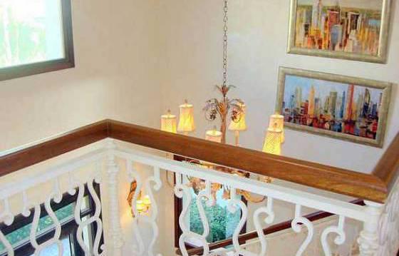 Upstairs you can see another bedroom with en-suite bathroom and master bedroom with a jacuzzi, a large shower room and a covered terrace, which is used as an additional living room or study.
