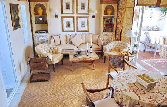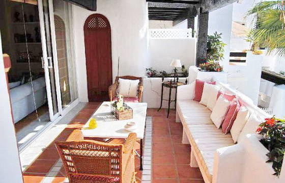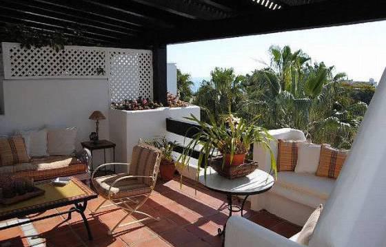 This complex is beautifully landscaped and manicured tropical gardens with swimming pools. On the ground floor a spacious living / dining room with access to a partially covered terrace, a fully equipped kitchen with utility room, 2 bedrooms with bathrooms, one with access to the front terrace and a guest toilet. On the upper floor: living room opening onto a terrace with sea views, master bedroom with bathroom, dressing room and access to the terrace, on the terrace on the back side of the house offers beautiful views of the mountains. Two parking spaces and one storage room in the underground garage included in the price. Unique villa with sea views in one of the most sought after areas Marbeli. Ploschad terraces sq. m .: 103Ref. N: IVR-3533