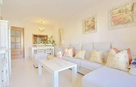 Attractive apartment with 2 bedrooms and 2 bathrooms, in the center of Sabinillas within walking distance of all amenities including the beach, restaurants, shops and supermarkets. The property is located on the third floor with elevator. The apartment has an entrance hall, living / dining room with access to the terrace. Fitted kitchen with built-in oven, stove, dishwasher, washing machine and fridge freezer. Utility room. Master bedroom with fitted wardrobes and a bathroom, another bedroom with fitted wardrobes and en-suite shower room. Air conditioning warm-cold, double glazing, garage, parking and storage room. Area 70m2