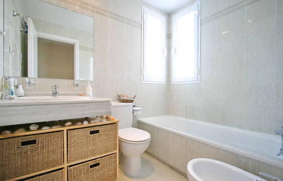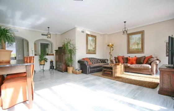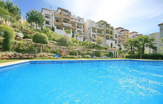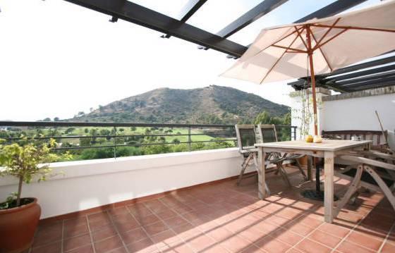 Exceptionally well situated penthouse with 2 bedrooms and 2 bathrooms in a popular location. Oriented to the south, with stunning views of the mountains and golf course. Located in "El Lago", close to the golf club and the (under construction) - a commercial center in the Los Arqueros, this is really the perfect place for a family holiday and prozhivaniya. Trenirovochnoe golf course, a golf course and club house with restaurant and bar and all amenities are within walking distance from the house, there is easy access to the toll road, supermarkets, San Pedro, and near Puerto Banus and Marbella. The apartment was built by Taylor Woodrow, it features: Cream marble floors, air conditioning hot / cold, high quality bathroom and a fully equipped kitchen. Penthouse briefly comprises: entrance hall, bright and spacious living / dining room, kitchen with granite countertops and high-end appliances with oven, ceramic hob with 4 burners, extractor hood, dishwasher and fridge freezer. Utility room with Bosch washer and dryer. 2 bedrooms with fitted wardrobes and a shower room. Initially, 3 bedrooms in a house converted into a 2 bedroom for more spacious living area. It can be easily converted into a 3 bedroom. Large terrace oriented to the south side with a view of the mountains and the golf course. From this terrace there is access to a solarium and an amazing view! Heated swimming pool! The area of