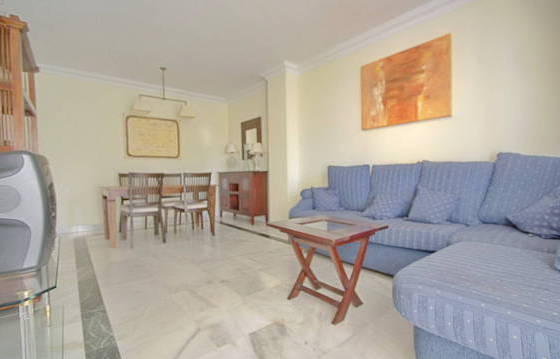 Located on the Golden Mile is a very cozy apartment with 2 bedrooms, 2 bathrooms, oriented to the west side overlooking the La Concha and the sea. The apartment is located on the 4th floor of an elevator with access from the underground garage. Gated community with 24-hour security, landscaped gardens with a communal pool and tennis court. The apartment is in good condition, comprises entrance hall, living / dining room with access to the west open terrace. The kitchen is equipped with built-in appliances including: oven, hob, fridge / freezer and dishwasher. Storage room with washing machine. The master bedroom has fitted wardrobes and a bathroom, second bedroom, also with fitted wardrobes and bathroom .There is a parking space in the underground garage. Hot and cold air conditioning, marble floors, shutters on windows spalni. Ploschad 85 m2 Living 64 m2 terrace 10 m2
