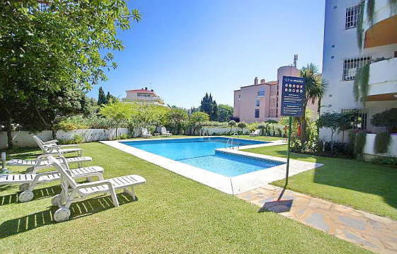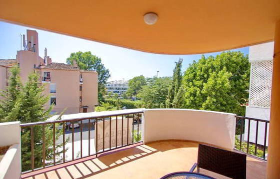 Conveniently located 3-bedroom apartment within walking distance of Puerto Banus. On the 4th floor, oriented South-East, in a quiet area in the well-kept complex near Puerto Banus. The house with an elevator, there is a parking space, communal pool and gardens. The apartment consists of an entrance hall, fully equipped kitchen, spacious living / dining room with access to a covered terrace. Two bedrooms, one bathroom. Marble floors, blinds, satellite TV, air conditioning (hot and cold). Optional: purchase of an underground parking space. Area: 100m2 + 13 m2 terrace. Bedrooms: 2 Bathrooms: 1