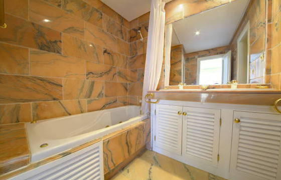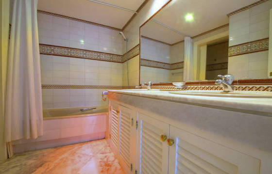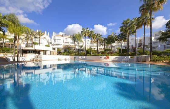 White Pearl Beach, Elviria Playa. Very spacious apartment with 2 bedrooms and 2 bathrooms on the second floor in an exclusive community on the second line from the best beach of the Costa del Sol. This is a great apartment for a permanent residence or holiday. A few steps from the beach and within walking distance of other amenities including shops, restaurants, and others. Gated complex with lovely community gardens and a large swimming pool. This apartment is located on the ground floor and briefly comprises entrance hall with guest toilet, leading to a spacious living / dining room with open fireplace and access to the South West terrace. Kitchen with built-in oven, hob, dishwasher and fridge freezer. Utility room with washing machine. Master bedroom with fitted wardrobes and a bathroom with a spa bath and access to the terrace. The second bedroom, with fitted wardrobes and access to the terrace and en suite bathroom. Entering the South West terrace from all major rooms. Marble floors, hot and cold air conditioning. Garage and storage room. The apartment needs some repairs that were considered in the asking price. Area 145 m2 Floor 117 m2 terrace 47 m2