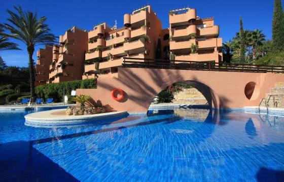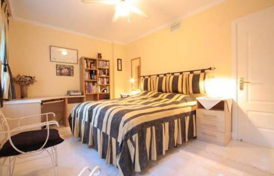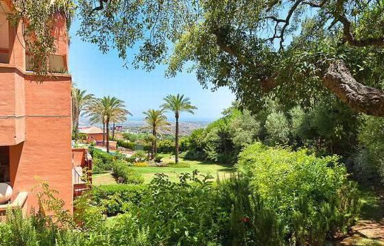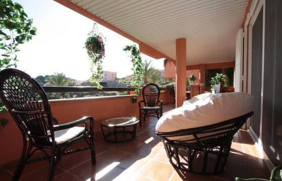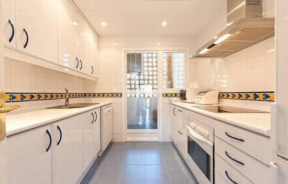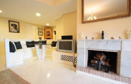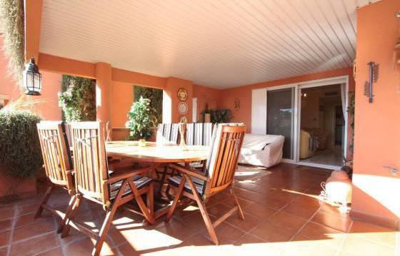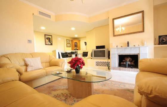 3 bedroom apartment in El Vicario, located on the second floor there is a spacious terrace and a large private garden, which has direct access to the communal pool and gardens. The apartment consists of an entrance hall, spacious living / dining room with open fireplace, exit to the covered terrace. The open part of the terrace, with stairs down to the private garden. Fully equipped kitchen with integrated appliances: oven, hob, dishwasher and fridge freezer. Utility room with built in wardrobes for storage and washing machine. Master bedroom with fitted wardrobes and a bathroom with a round bath and glass screen. Second bedroom with fitted wardrobes and a family bathroom with shower. The complex is gated with a well manicured gardens and large communal swimming pool. Hot and cold air conditioning, marble floors, covered parking, a large storage room. Area 312m2 Floor 95 m2 terrace of 42 m2, private garden of 124 m2