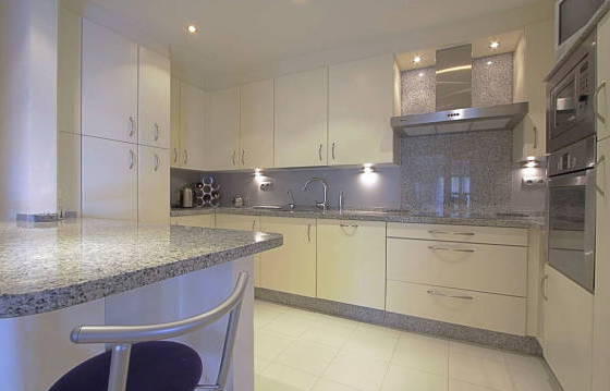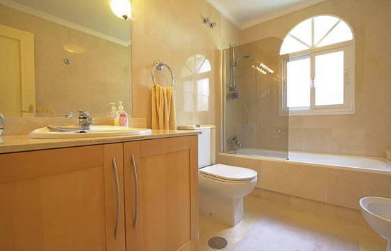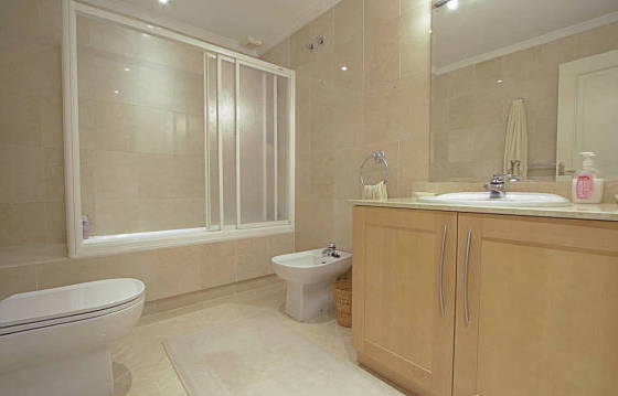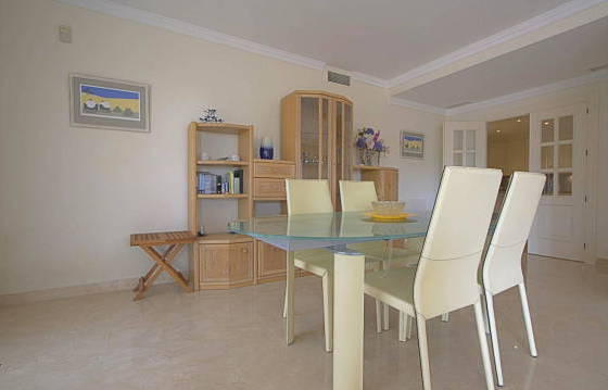 Fabulous apartment on the second floor, is focused on a sunny west side, on the first line of La Quinta Golf. Easy access to all amenities including the motorway. The well-kept apartment complex with immaculate gardens and 2 large swimming pools. The apartment includes an entrance hall, a luxurious open kitchen with granite countertops, built-in oven, hob, microwave, dishwasher and fridge / freezer. The spacious living / dining room with windows on two sides, leading to the large covered terrace with access to the west garden. The master bedroom includes a study / living room and bathroom. 2nd bedroom with fitted wardrobes and a bathroom with marble floors, double glazing, hot and cold air conditioning. Indoor and outdoor parking in the complex. The area of
