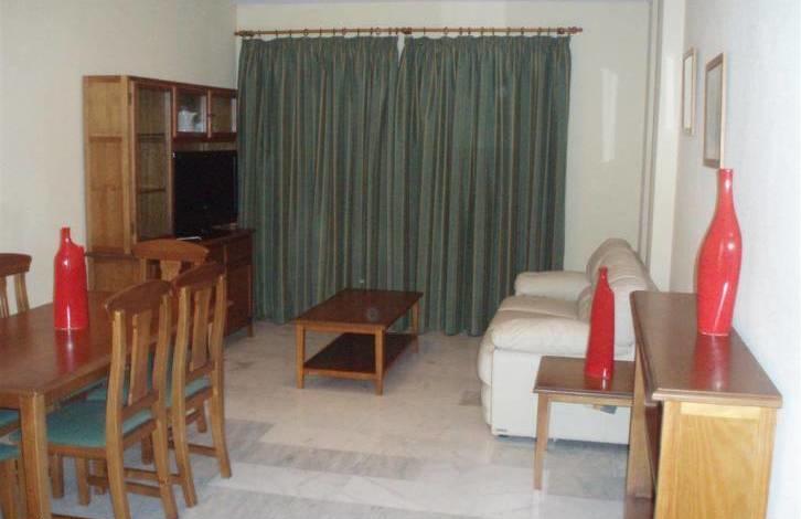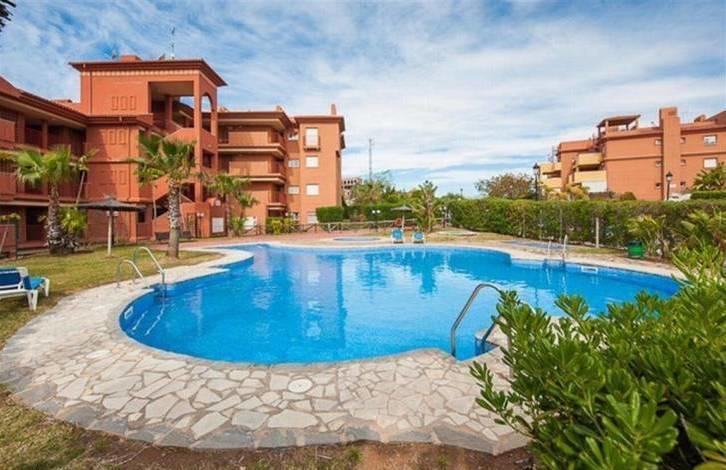 The ground floor apartment in Marbella, within walking distance to the Golf course, shops, school. Total area 102 m2, terrace 17 m2. 2 bedrooms, 2 bathrooms, living room with exit to a large terrace with mountain views, a fully equipped kitchen, Parking space in the underground garage, storeroom, Laundry. Fitted wardrobes, air conditioning warm/cold, satellite TV, marble flooring, double glazing. Gated complex with pool and garden.