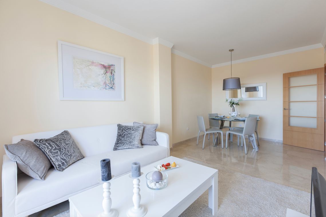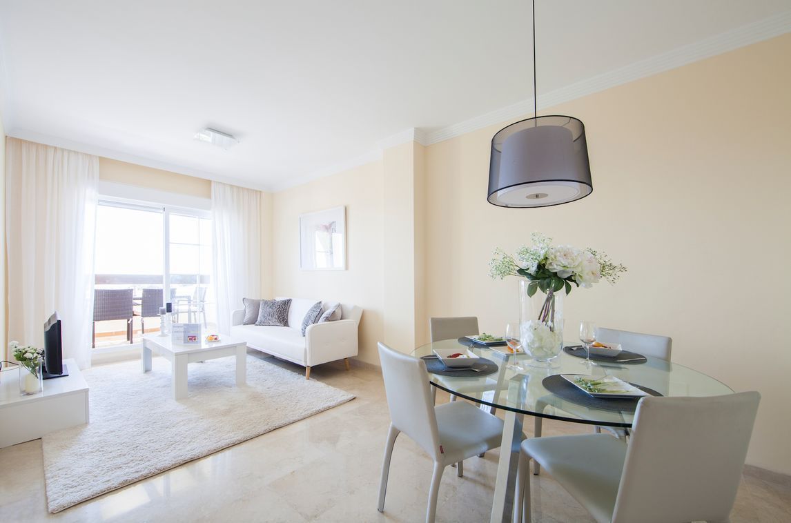 Апартаменты высокого качества рядом с частным полем для гольфа "Par 3". Отличные виды моря, гор и гольфа, а также красивые общие зоны внутри жилого комплекса. Полностью оборудованная кухня, 2 спальни с выходом на террасу. Все апартаменты продаются с 2 парковочными местами и тех. помещением для хранения.