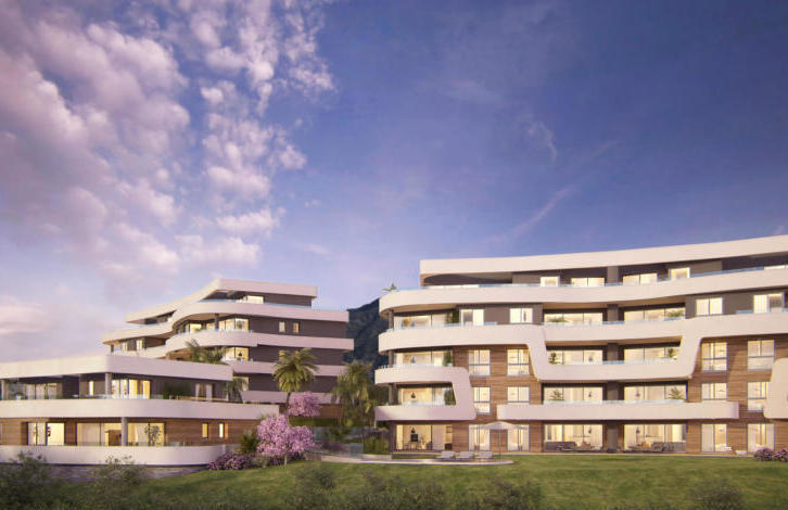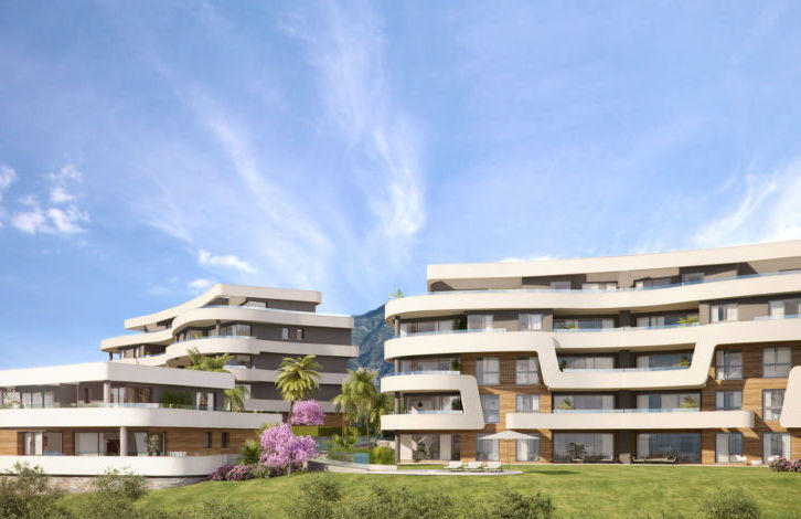 The apartments have been designed in a modern style and are located in landscaped gardens with a swimming pool.
