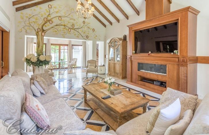 5 bedrooms, 6 baths, living room with fireplace, dining room, lounge, sauna, separate apartment for staff, a music system, Underfloor heating, air-conditioning, security system.