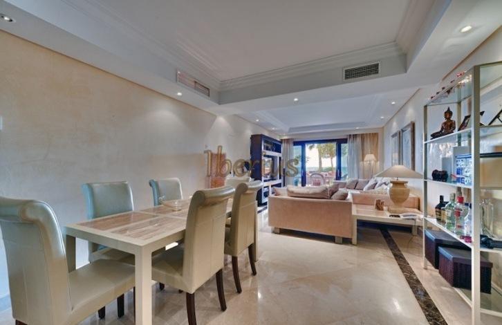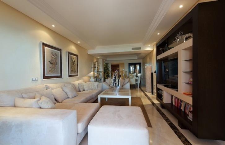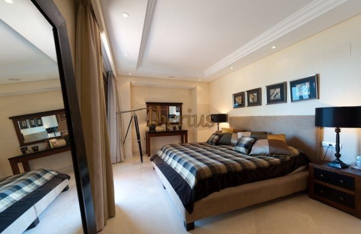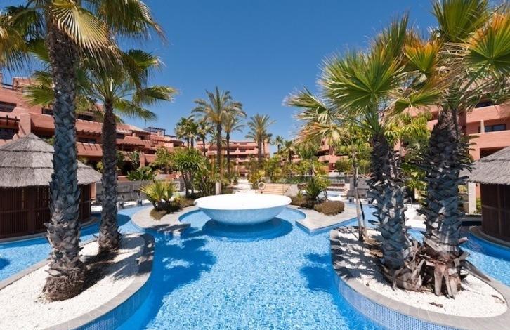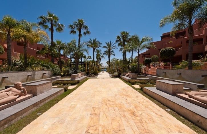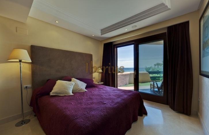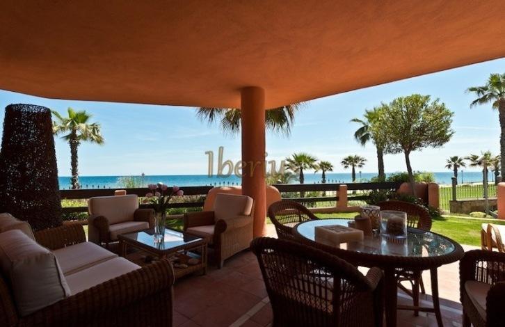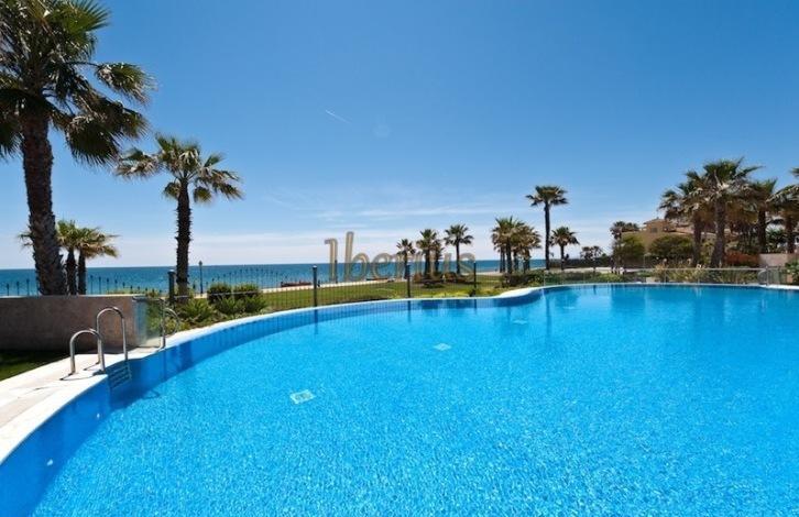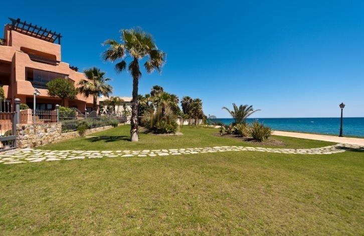 Apartments on the first line of the beach in the urbanization of New Golden Mile in Estepona. On the territory of the public are garden, outdoor swimming pool, a small indoor swimming pool, gym, spa.