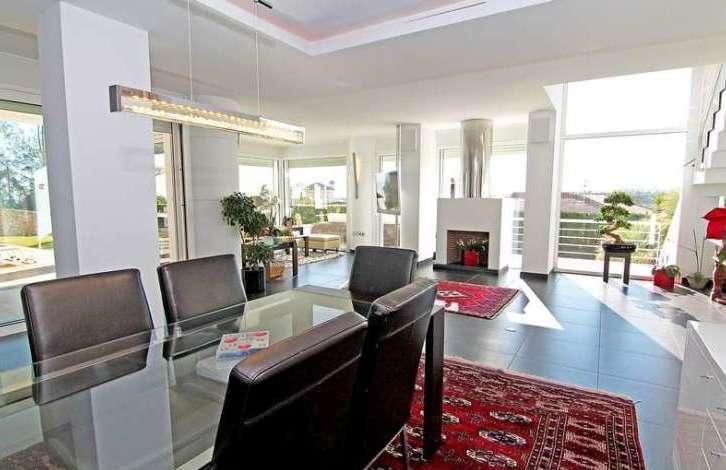 Lower level: games room with access to a protected terrace and garden; 2-suite guest bedrooms - one with a private patio, a spa area with a shower, toilet and a Turkish bath; a large home cinema with 3D-projector; 500 designer bottle wine cellar with climate control; large office with access to the garden; laundry; bedroom with bathroom and double garage. Individually controlled air-conditioning, heated floors and glass windows with double glazing throughout the house. Solar panels heat the hot water and saltwater pool. Energy-saving LED lighting inside and outside (many of which are programmable RGB lights). The high-end multimedia system from 1500 DVD or Blue Ray media server, IP - HD-distribution channels and background music throughout. Modern systems of "smart house", which is implemented through iPads and iPhones and manages heating, lighting, blinds and multimedia around the home and outdoors. interior and perimeter alarm system with cameras connected to security company 24 hours a day. The villa is surrounded by a beautiful garden with swimming pool and jacuzzi.