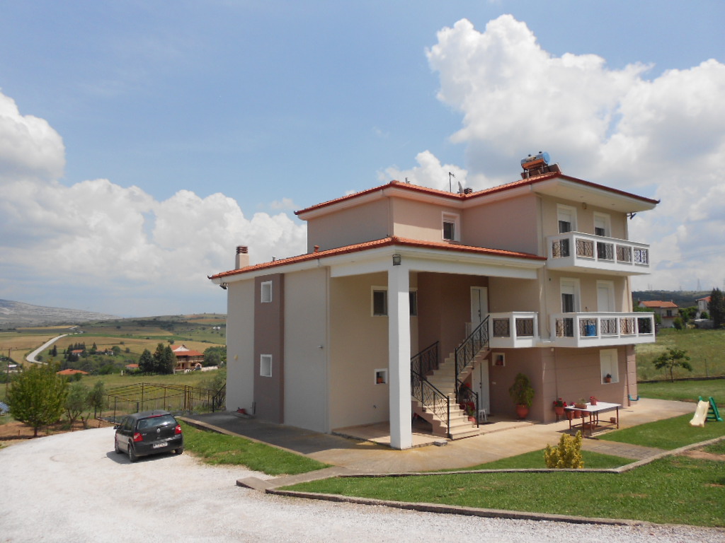Sale 4-storey house of 500 square meters in the suburbs of Thessaloniki. The basement consists of one storeroom. The first floor consists of a living room, one kitchen, one bathroom, one storeroom. The second floor consists of 2 bedrooms, one bathroom. The third floor consists of 4 bedrooms, living room, one kitchen, one bathroom, one washroom, 2 pantries, one walk-in closet. The Windows offer views of the mountains and the city. The object has solar panels for water heating, fireplace, air conditioning, heating. The object has an alarm system. To the property belongs a Parking space, garage.