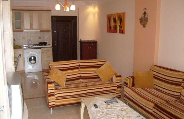 Красивая меблированная квартира расположена в городке Оба, примерно в 3 км к востоку от туристического города Алании. Квартира с выходом на большой балкон, гостиная и кухня, 1 спальня, ванная комната с туалетом и душем.