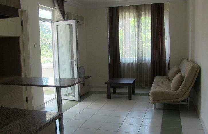 Apartment layout (1+1) total area of 45 m² include a welcoming living room with furniture, which is combined with kitchen area. N. The bedroom has a double bed with orthopedic mattress and built in wardrobe. All rooms have air conditioning. The bathroom has a shower stall. The complex has a pool, fintnes , generator. br>