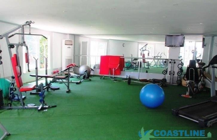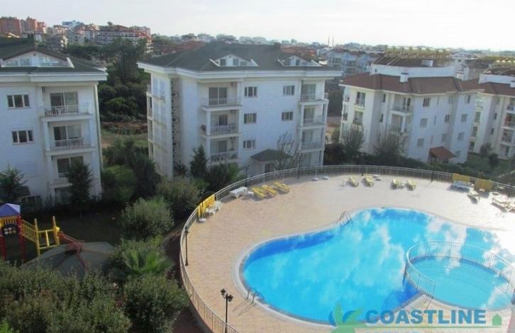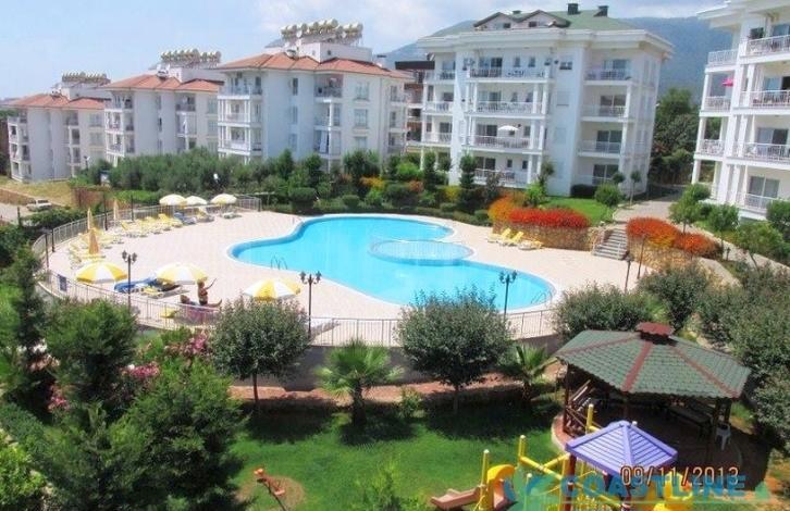 Апартаменты находятся в большом красивом ухоженном жилом комплексе, территория комплекса охраняется. На всей территории комплекса очень красивое озеленение, разбит красивый сад. В комплексе на территории есть плавательный бассейн с детской секцией, терраса с шезлонгами и зонтиками возле бассейна, тренажерный зал, открытая автопарковка, детская игровая площадка, генератор. В комплексе всего 6 4-этажных зданий. Ежемесячная оплата за содержание комплекса всего 100 турецких лир. Расстояние от комплекса до моря и пляжа составляет около 800 м. Поблизи есть магазины и рестораны, аптеки. Рядом с комплексом есть больница и частная школа, общественный транспорт.