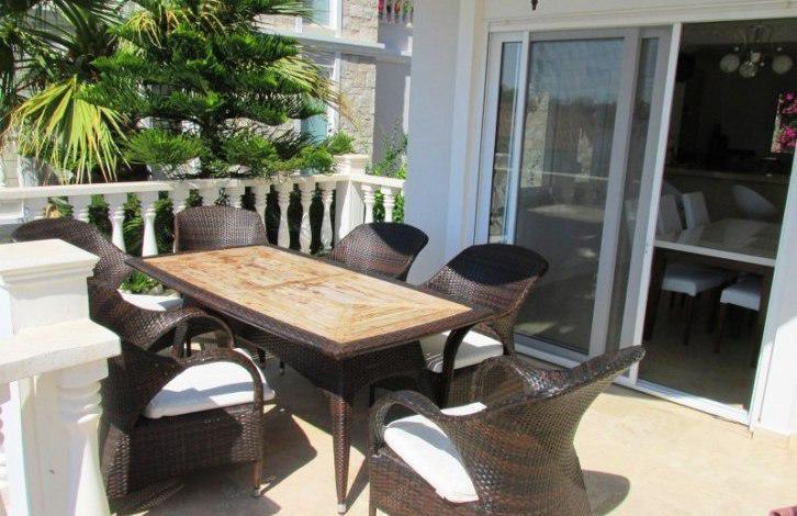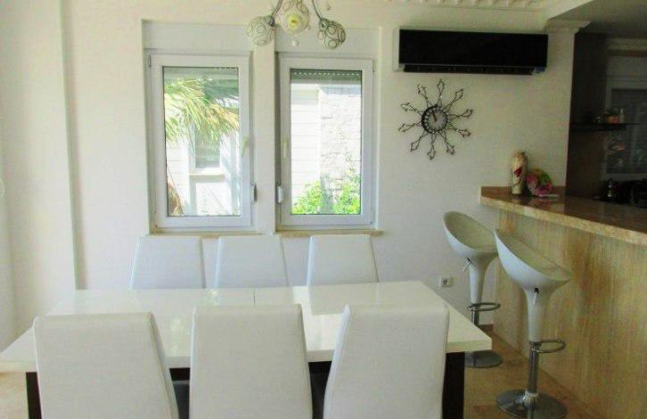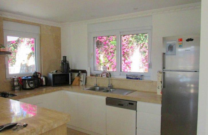 All the floors in the Villa lined with luxurious travertine marble. The Villa has 3 bedrooms, 1 study room, 1 living room with American kitchen, 5 balconies, 1 guest toilet, 2 bathrooms, one of which is equipped with a shower and bath. The kitchen is equipped with a full set of home appliances Siemens brand, there is a utility room with a washing machine and a wardrobe. All rooms are furnished and the living room have air conditioning. And the Villa is a great place to stay - huge rooftop terrace with panoramic views of the sea and mountains. Both rooms on the ground floor there is an exit to a private terrace, a small private area with a small plot of land with standing shower.