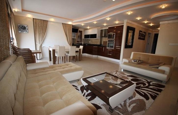 The apartment has a comfortable layout and first-class finishes. The balcony offers a magnificent view of the pool, the sea and the mountains . The total area of the apartment is 138 2 m. Each room has suspended ceilings with LED lighting, all windows have blinds. The price includes all the designer furniture, textiles and accessories, as well as household appliances. The residential complex is located 150 meters from the beach.