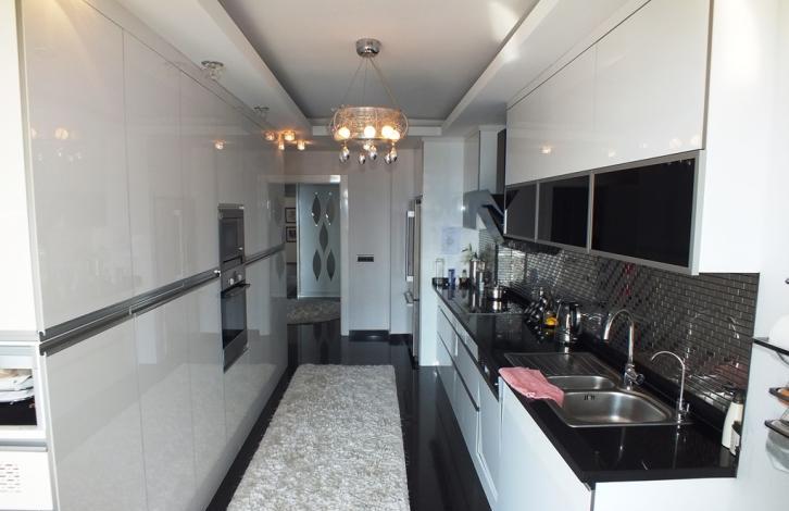 The apartment is made quality repairs, special attention is paid to the kitchen, hallway and living room. The owners of the apartment ordered a kitchen set according to a specially designed design: shelves and cabinets for individual types of dishes, all boxes with automatic closers, shelves illuminated. In the hall there is a built-in special closet for shoes and outerwear. The living room has a sound system for a music center and a TV.
