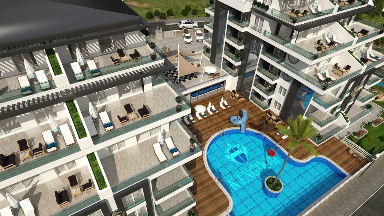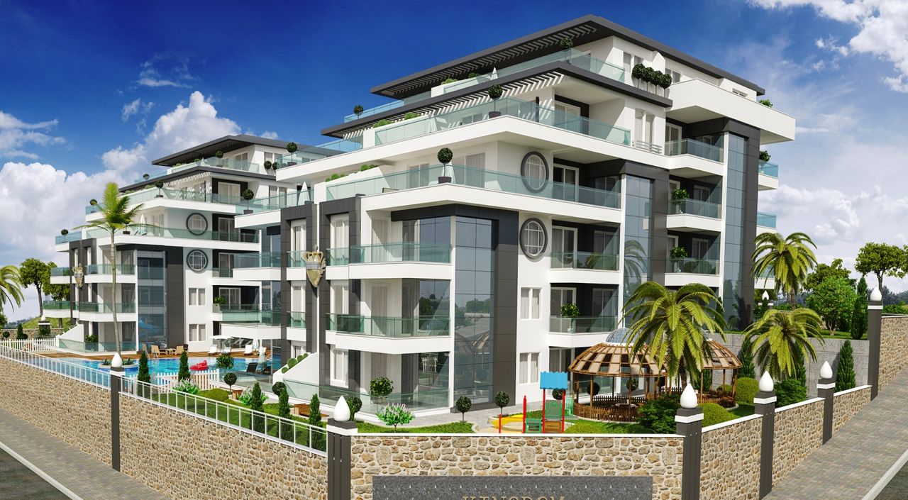 the Residence is built in the rapidly developing district of Alanya - Kestel. Most of the apartments in the complex have stunning views of the mountains, the sea and the river Dim. The new complex features a unique architecture and modern design. Used in the construction of a unique modern building materials of high quality. The complex is located on a hill, on a plot of 3000 sq. m. There are apartments for every taste 3+1. All apartments have spacious balconies, while the penthouses on the top floors have large terraces which offer a stunning panoramic view.