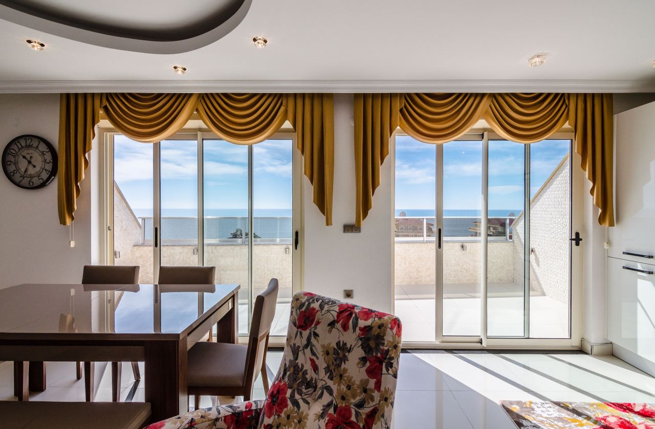Penthouses in Mahmutlar Alanya on top of the complex Yenisey Residence is located on the first coastline, on Barbaros street where all the restaurants, bars, pharmacies and shops