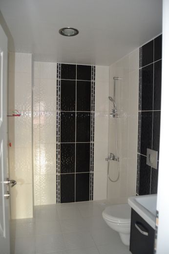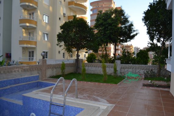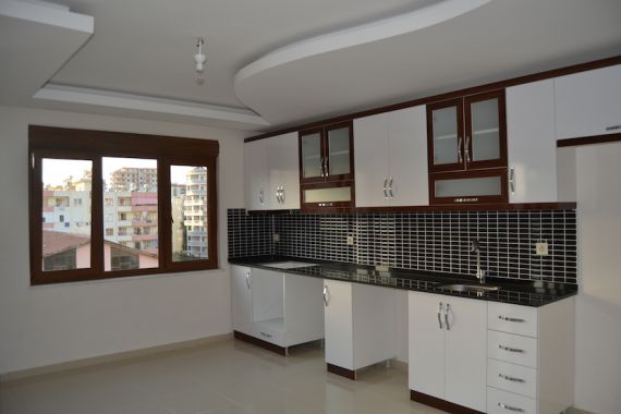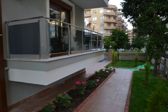 Планировка подразумевает гостиную, совмещенную с кухней, 1 спальню, ванную комнату и балкон. В квартире есть нагреватель воды, железные жалюзи на окнах, кухонная мебель, подвесной потолок с подсветкой. Апартаменты находятся в новом доме, от улицы Барбарос 50 метров и в 300 метрах от пляжа. Поблизости находится вся необходимая для жизни инфраструктура, в шаговой доступности по вторникам проходит восточный базар.