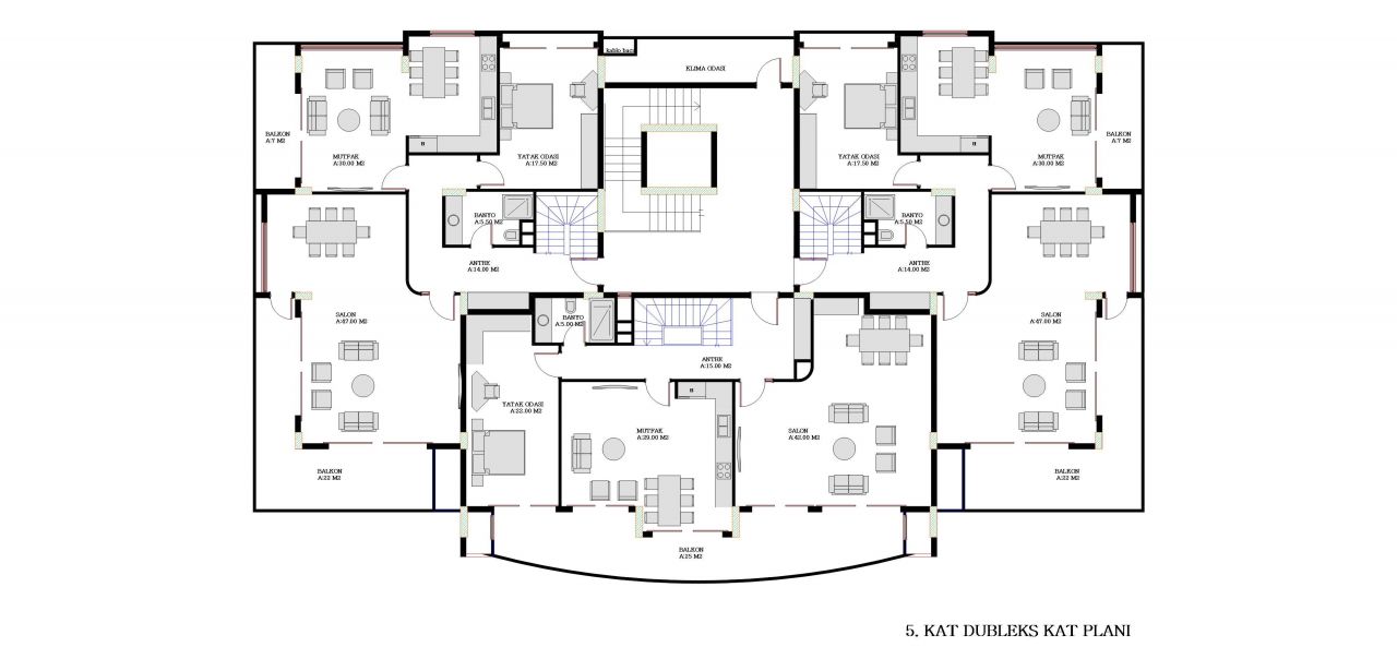 This modern and luxurious complex consists of three 8-storey buildings, totally 54 apartments. You can find 45 3 bedroom apartments with 175 SQM (separat kitchen) and also 9 dublex penthouse apartments 350 SQM with 5 bedrooms (separat kitchen).