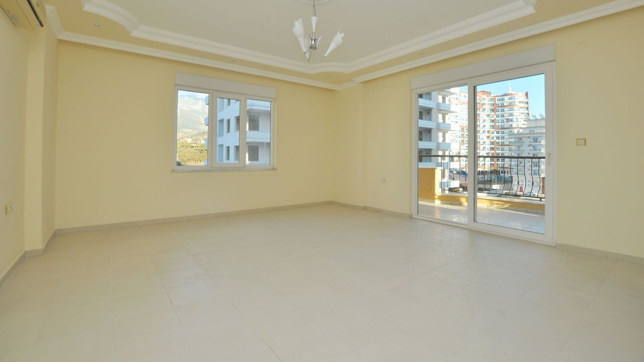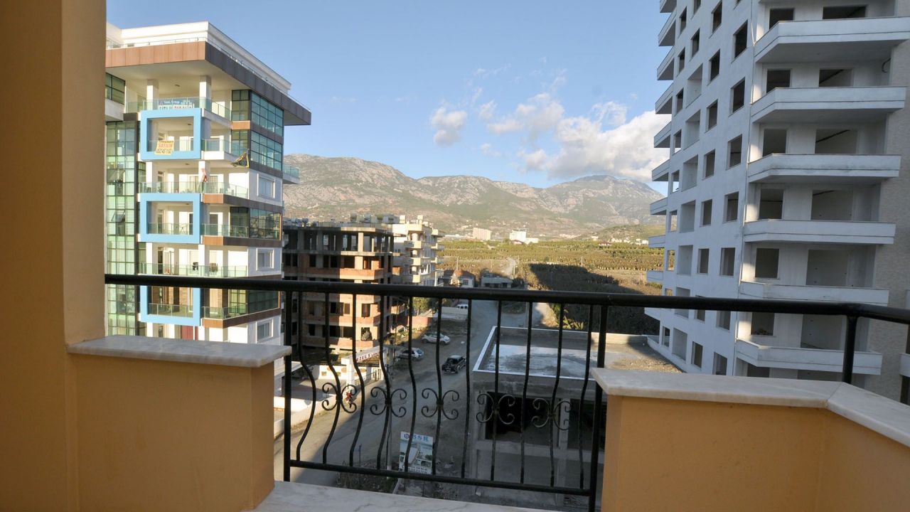 Spacious apartment of 110 sq. m. with layout 2 + 1 with a beautiful view out the window is available in your choice. Exclusive apartment has a lot of advantages, starting with the construction and finishing of the interior. Each area was tasteful approach, used in the best and quality materials. Marble floors, decorative ceilings, modern bathroom, and two balconies overlooking the beautiful mountains just make you buy this house in Alanya. The kitchen in this open-type apartment, equipped with appliances, in suite storage accessories. The bedrooms and lounge are air conditioned. For public services complex includes a swimming pool, with one side adapted for children, a fitness center and sauna. Security is also set at the highest level of control with cameras.