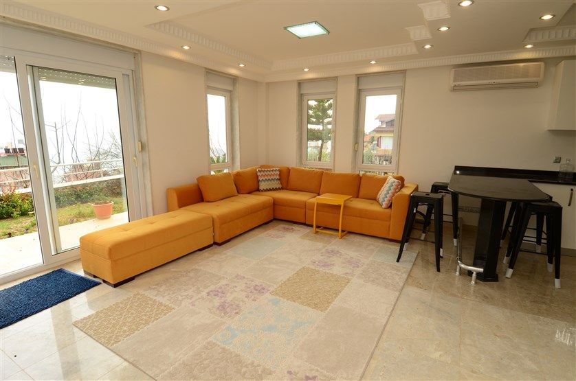 Вилла очень просторная и имеет планировку 4+1. Что немаловажно, планировкой также предусмотрено наличие 4 ванных комнат, 4 балконов и просторной террасы для отдыха. В гостиной есть мебель, которая также входит в стоимость.