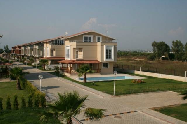 Трехэтажная вилла класса люкс с 4 спальнями и 4 санузлами площадью 315 кв м в коттеджном поселке в Белеке. Просторный бассейн, ухоженная территория, охрана и, главное, близость к аэропорту и сосновым рощам Белека.