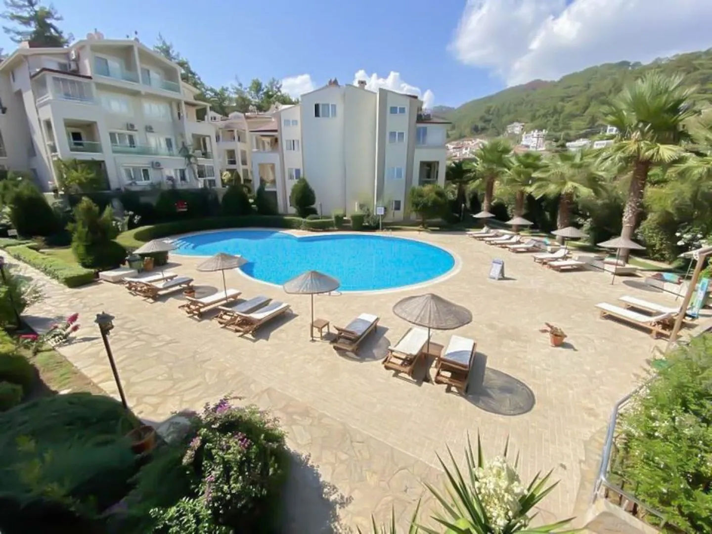 This is a three bedroom apartment in a luxury complex in Armutalan. Has a very large shared swimming pool with a lovely garden and very large area for sunbathing. At the entrance floor there is a large lounge with an open plan kitchen, one toilet and a very large front balcony. On the second floor there are two bedrooms and a large master bedroom with bathroom, one shower room and side balconies. There are caretaker service, 24hr security at the entrance. Garden and pool maintenance every day. It is in a very good location, Armutalan center and Marmaris beach is only 5 min distance. There is a bus stop at the entrance. For sale with furniture and all white goods.Property Features24/7 SecurityAutomatic Fire Extinguish SystemBasementClose to Public TransportationParkingInterior FeaturesAir ConditioningBalconyAnchastreCentral Heating SystemIntercom SystemLaminant ParquetOpen KitchenShower CabinExterior FeaturesDigital Satellite SystemEarthquake ProofWifiSecurity CamerasProject AmenitiesOutdoor Swimming PoolParking AreaStorage RoomLocation AmenitiesCentral LocationClose to HospitalClose to MarinaClose to Shopping MallForest ViewFront Side24/7 SecurityAutomatic Fire Extinguish SystemBasementClose to Public TransportationParkingAir ConditioningBalconyAnchastreCentral Heating SystemIntercom SystemLaminant ParquetOpen KitchenShower CabinDigital Satellite SystemEarthquake ProofWifiSecurity CamerasOutdoor Swimming PoolParking AreaStorage RoomCentral LocationClose to HospitalClose to MarinaClose to Shopping MallForest ViewFront Side