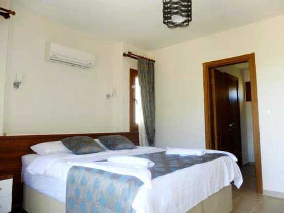 This modern villa in Fethiye on the Mediterranean Sea is ideal for a holiday home or for permanent residence. Calis is a small resort with great views (and spectacular sunsets) across the bay on the island Sovalye and Fethiye. Along the promenade there is a pedestrian boulevards, where there are many bars and restaurants. Relaxed atmosphere makes it the perfect place in the sun for a family holiday. in Calis there are water sports, including windsurfing, water skiing and scuba diving. There is also a water park with pools, slides and entertainment. Boat trips, trips to Dalian and mud baths, paragliding from Babadag Mountain in Olu Deniz-Blue Lagoon. Aeroport Dalaman is a 45-minute drive away.