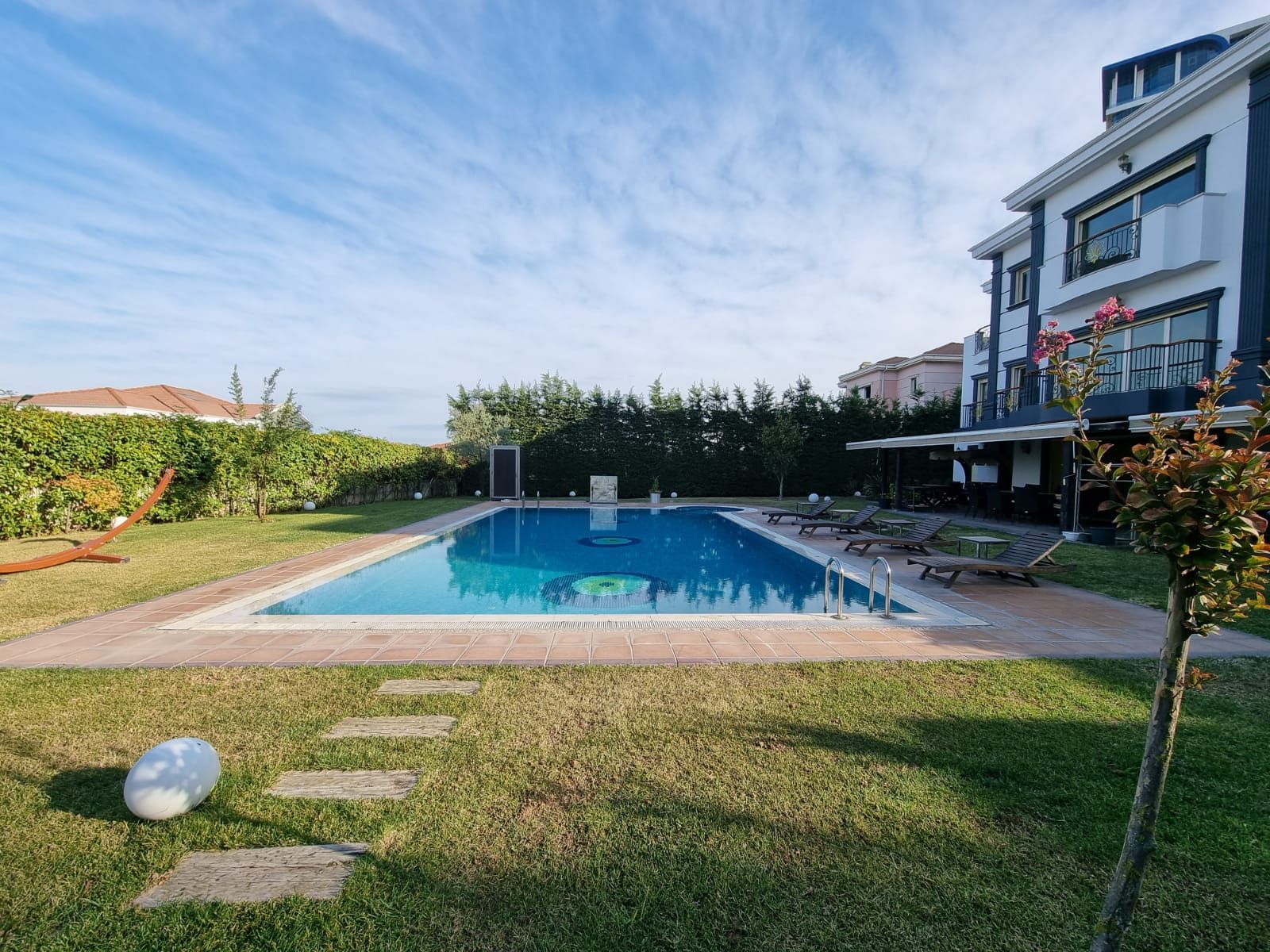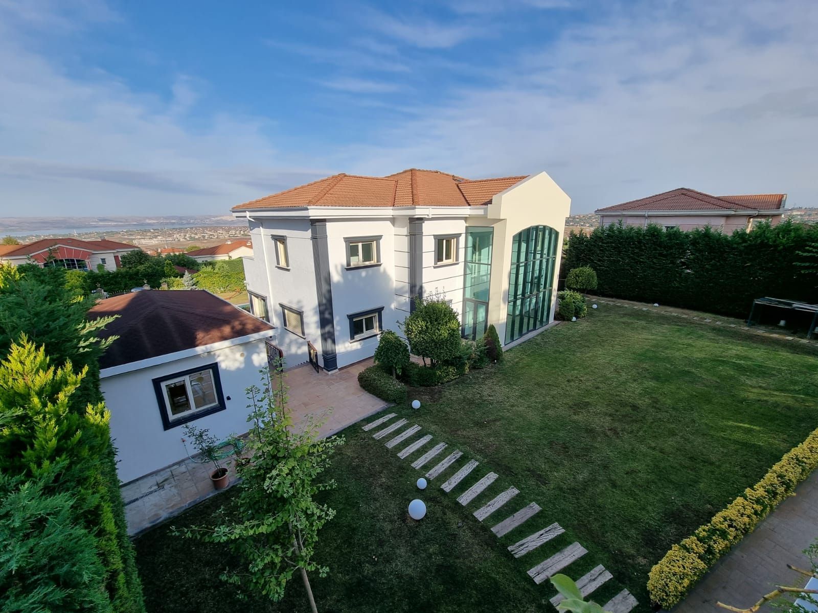 LocationBuyukcekmece is found at the unique location where the town is covered with the Marmara Sea and Buyukcekmece Lake from three sides so that some parts of the location can be identified as a peninsula. Buyukcekmece consists of luxury property projects, especially waterfront villas. You can live in a deluxe mansion-style villa as you can find high-profile projects close to the seaside and lake which are fully equipped with plenty of social facilities and a wide landscape throughout the projects. The town, which provides easy access to the city center, offers you to experience luxury living style in nature and tons of blue. About Tulipa VillasTulipa Villas is located near the Sea and Büyükçekmece lake, which has 56 residence flats consisting of 127 villas, where the Rooted Families of Istanbul live. It is a clean air living space with its magnificent nature and view. Tulipa Villas serve as a Secure Site when searching for a Secure Site in Büyükçekmece district.About PropertyLocated in a secure and luxurious complex in Büyükçekmece, this huge villa not only fascinates those who see it with its size, but also amazes those who see it with its magnificent design details.The exterior of the villa, which consists entirely of glass walls, allows the villa to receive natural daylight all day, while the transparent structure it creates draws attention to the modernity of the villa.When you enter inside, you can see that there is a special elevator inside the villa, which we can define as disabled-friendly, so even though this magnificent villa has 3 floors, you do not need to be intimidated of it. Thanks to your elevator, you no longer have to climb stairs.Rising on an area of 900 square meters, this magnificent building hosts a huge outdoor swimming pool adorned with evil eye beads, a large garden and an outbuilding. When you go inside, 10 large bedrooms, 2 living rooms, 5 bathrooms, a laundry room and a dressing room are waiting for you.However, the detail that will make you fall in love with this magnificent building will definitely be the wonderful details that the architects applied inside. You will not only see the noble details of French architecture on the windows, floors, kitchen cabinets, and finally the stairs, but also witness the resplendent English architecture on the walls, bathrooms and golden door handles.Distances- 5 mins away from Hospital- 2 mins away from Schools- 4 mins away from Public Transport- 40 mins away from Istanbul AirportProperty FeaturesBasement24/7 SecurityClose to Public TransportationSmart Home TechnologyParkingAutomatic Fire Extinguish SystemInterior FeaturesIntercom SystemDressroomLaundryroomStoreroomParent's BathroomLog FireClimaCombiAnchastreSound InsulationEntranceParquetLaminant ParquetBalconyHigh CeilingCaregiver RoomStudy RoomSpot LightsAnnexCoat RoomJacuzziShower CabinBathtubExterior FeaturesGeneratorSuitable for disableWater TankWifiEarthquake ProofSmart Home SystemSecurity CamerasFiber Optic Internet NetworkDigital Satellite SystemProject AmenitiesBarbecue AreaRestaurant / CafeTailorTurkish BathSPAFitness CenterMassage SaloonParking AreaSecurityMeeting RoomJogging TrailsConciengeHousekeeping ServiceYoga, Plates RoomBilliard RoomLobbyTerraceElectric Car Charger ServiceMosqueCamelliaTable Tennis RoomTechnical ServiceMarinaIndoor Swimming PoolSocial ClubsWellness CenterSport Court for Multiple PurposesHobby RoomVoleybol CourtStorage RoomSunbath TerraceLakePet Care Veterinary ServicePondAirport Transfer ServiceChildren PlaygroundCar WashLocation AmenitiesClose to BridgesFront SideFacadeForest ViewClose to E-5 HighwayNear UniversityNear Business CenterClose to TEMLake ViewClose to HospitalClose to Shopping MallClose to Istanbul AirportClose to TEM HighwayClose to Avrasya TunnelCentral LocationNear MetrobusBasement24/7 SecurityClose to Public TransportationSmart Home TechnologyParkingAutomatic Fire Extinguish SystemIntercom SystemDressroomLaundryroomStoreroomParent's BathroomLog FireClimaCombiAnchastreSound InsulationEntranceParquetLaminant ParquetBalconyHigh CeilingCaregiver RoomStudy RoomSpot LightsAnnexCoat RoomJacuzziShower CabinBathtubGeneratorSuitable for disableWater TankWifiEarthquake ProofSmart Home SystemSecurity CamerasFiber Optic Internet NetworkDigital Satellite SystemBarbecue AreaRestaurant / CafeTailorTurkish BathSPAFitness CenterMassage SaloonParking AreaSecurityMeeting RoomJogging TrailsConciengeHousekeeping ServiceYoga, Plates RoomBilliard RoomLobbyTerraceElectric Car Charger ServiceMosqueCamelliaTable Tennis RoomTechnical ServiceMarinaIndoor Swimming PoolSocial ClubsWellness CenterSport Court for Multiple PurposesHobby RoomVoleybol CourtStorage RoomSunbath TerraceLakePet Care Veterinary ServicePondAirport Transfer ServiceChildren PlaygroundCar WashClose to BridgesFront SideFacadeForest ViewClose to E-5 HighwayNear UniversityNear Business CenterClose to TEMLake ViewClose to HospitalClose to Shopping MallClose to Istanbul AirportClose to TEM HighwayClose to Avrasya TunnelCentral LocationNear Metrobus
