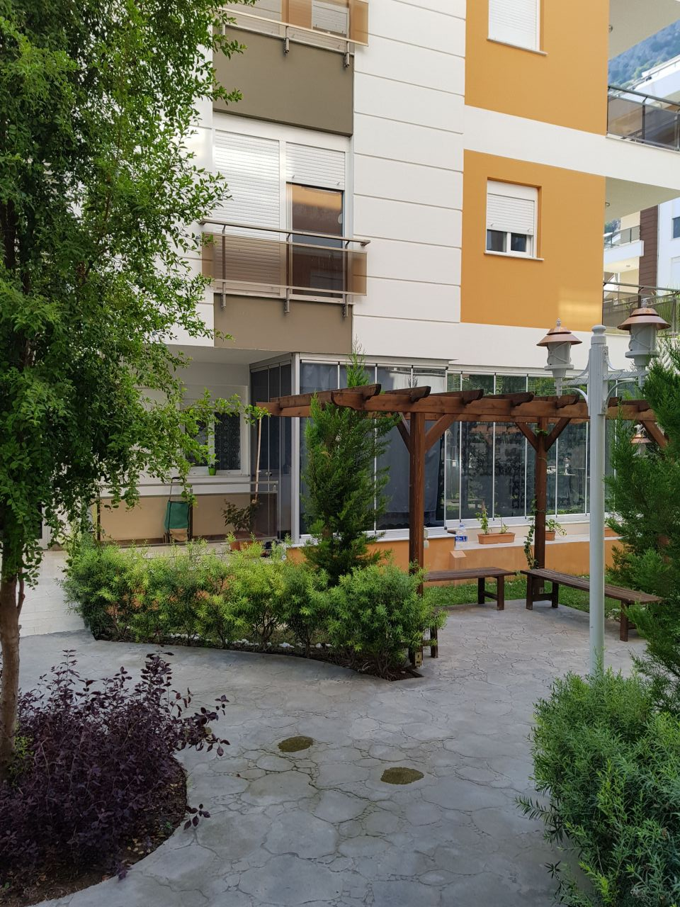 Новая квартира на 2м этаже. Хорошая планировка с большим коридором. Жилой комплекс с бассейном, фитнесом и сауной. Район Коньяалты-Хурма В 1300 метрах от пляжа.