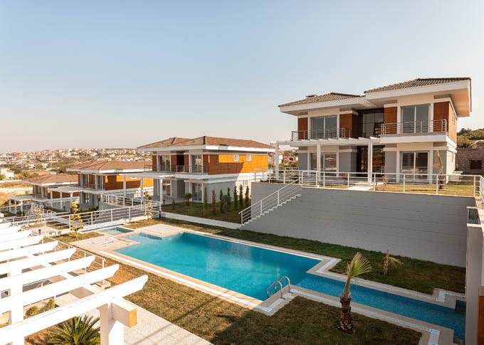 Виллы в комплексе с водопадами в Дальяне. Виллы расположены в одном из самых популярных мест Эгейского региона Дальян. Из комплекса открывается потрясающий панорамный вид на центр Дальяна и Эгейское море. Особое достоинство комплекса – интересный дизайн бассейнов, их в комплексе 3 и они соединены между между собой водопадами.