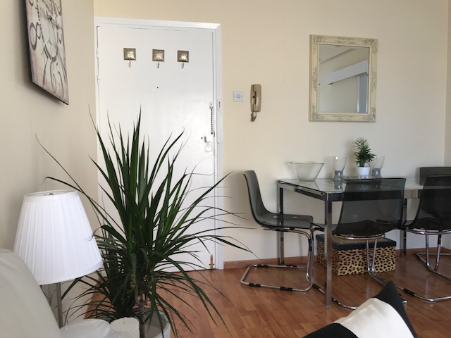 Apartment for sale of 60 sq. m In Limassol. The apartment is located on the third floor and consists of one bedroom, living room with kitchen, one bathroom. The Windows offer views of the sea. The object has solar panels for water heating, air conditioning. The property is sold with furniture.