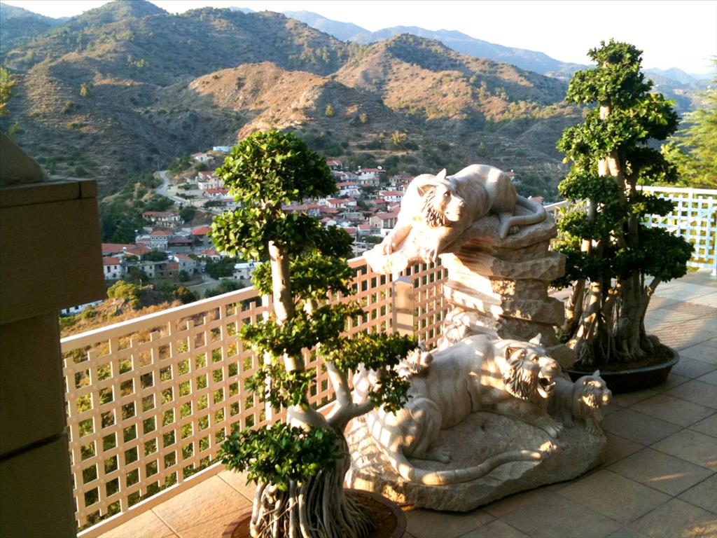 Two-storey Villa of 450 sq meters and 1751 sq. meters of land with panoramic views of the mountain forest. The Villa consists of a large living room, dining room, kitchen, five bedrooms, one of which is on the ground floor and 4 bathrooms. The Villa is fully furnished with quality furnishings, with air conditioning and full Central heating plus a wood fireplace. Also double glazed Windows. The walls are insulated from heat and cold. Very high quality. Large swimming pool 15 x 5 meters with ceramics. Large courtyard of 500 square meters around the pool. Pergola next to the pool. Saunas and water with an electric pump. Computerized electric irrigation system. The Villa is located in a very nice village 20 km from Limassol.
