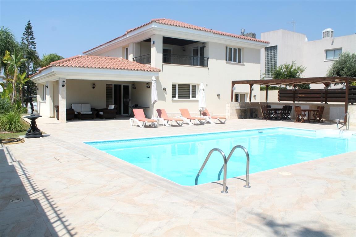 For sale 2-storey Villa of 320 sq. m In Limassol. The first floor consists of a living room, one kitchen, one bathroom. The second floor consists of 4 bedrooms, one bathroom, one shower room, one pantry. The Villa has a corner location. The Windows offer views of the sea and the city. The object has solar panels for water heating, fireplace, air conditioning, awnings, barbecue, heating. The property is sold with furniture. The object has an alarm system. To the property belongs a Parking place, garden, garage. The on-site swimming pool personal use.