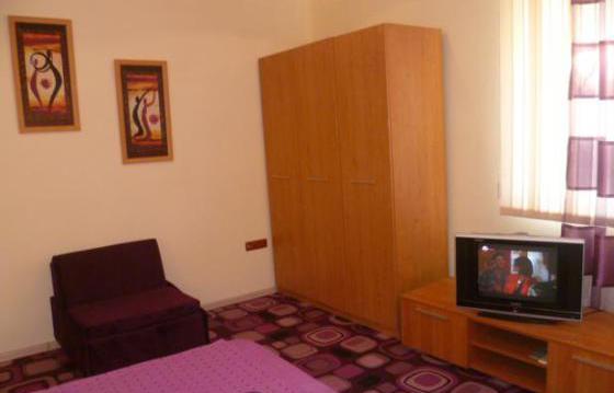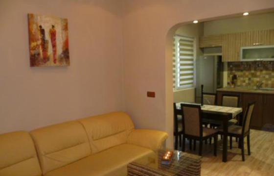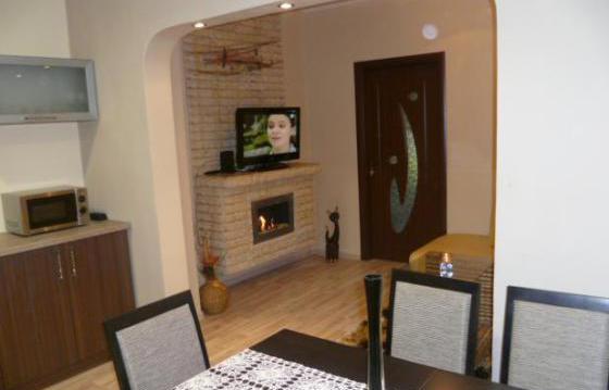 Большой гостиная с раскладным угловым диваном с журнальным столиком, камин топливного биоэтанола. Кабельное телевидение и беспроводной доступ в Интернет. Кухня - столовая, кухня с полным оборудованием. Одна спальня с двумя кроватями с матрасами. Вторая спальня оборудована круглой кроватью. Третья спальня с двуспальной кроватью. Ванная комната и туалет оснащен душем. Квартира отапливается кондиционером и электрическими нагревателями конвектора. Есть место для стоянки.