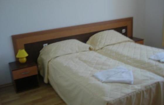 В каждой спальне есть двуспальная кровать, 2 прикроватные тумбочки, 1 двойной шкаф, туалетный столик, зеркало и стул.