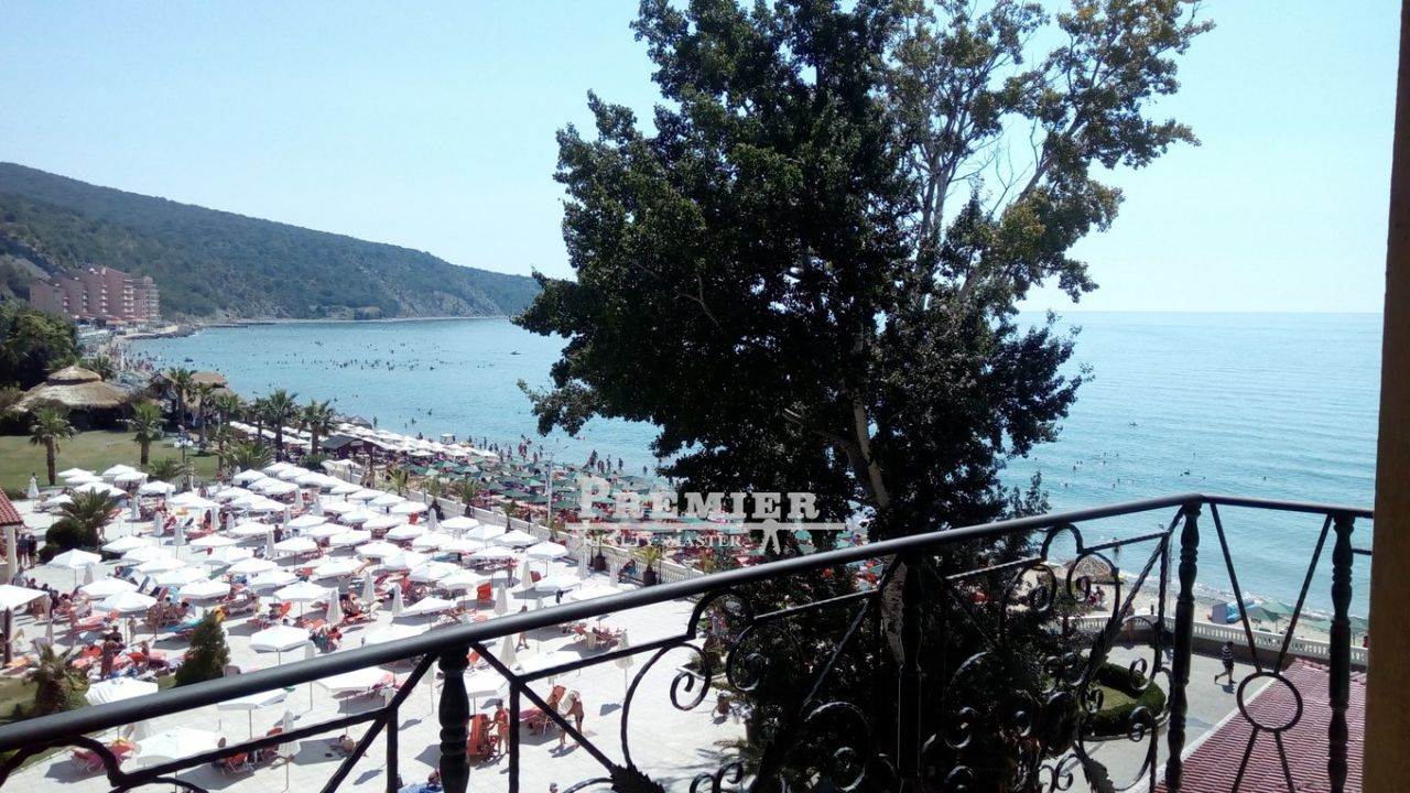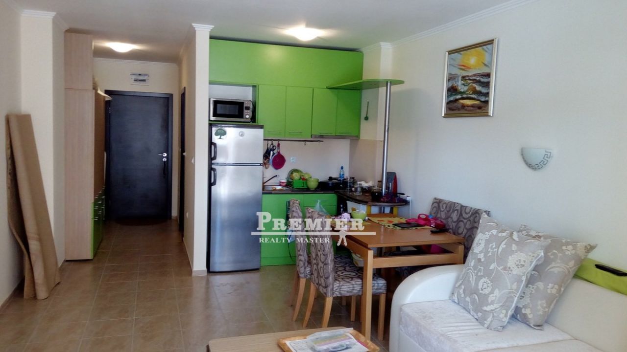 Вашему вниманию предлагается уникальная студия с прекрасным панорамным видом на море в райском месте- курорт Елените! Комплекс апартаментов расположен на первой линии природно-климатического курорта Елените. Это северная часть бухты Солнечного берега. До аэропорта Бургас - 35 км, до города Несебр - 12 км, до курорта Солнечный берег - 5 км, до города Свети Влас - 3 км. На карте болгарского побережья Елените расположено восточнее города Свети Влас. Песчаный пляж шириной 1 км находится прямо перед комплексом, через пешеходную аллею. Аквапарк - в 3 минутах ходьбы. Инфраструктура комплекса Аквапарк с современными водными аттракционами (скидка для собственников апартаментов) Боулинг 10 ресторанов (скидка для собственников апартаментов), несколько баров. Многочисленные бассейны Серфинг-клуб, в бухте Елените прекрасные условия для занятий виндсерфингом! Также предлагается водный парашют, водные лыжи, катамаран. Концертный зал Амфитеатр Ночной клуб, отдельное здание с хорошей шумоизоляцией, прекрасные интерьеры и оборудование. Культовое заведение, куда приезжают выступать звезды болгарской эстрады. СПА-центр, индонезийские и тайские процедуры. Персонал специалисты из Индонезии Пляж более 1 км песка, от входа в «Андалузия-2» всего 18 шагов Торговый центр Аниматоры на пляже, развлечения для взрослых и детей Красивый променад пальмовая аллея Медицинский центр, работающий круглосуточно Конная база конные походы в горы Огромный охраняемый паркинг Теннис 4 корта, бильярдный зал Собственное автопредприятие, автобусы и маршрутки в Солнечный берег и Несебр - каждые 15 минут. Время в пути до Солнечного берега 10 минут, до Несебра 20 минут Площадка мини-гольфа Такса поддержки квартиры - 700 евро в год.