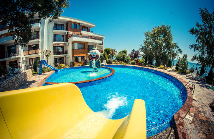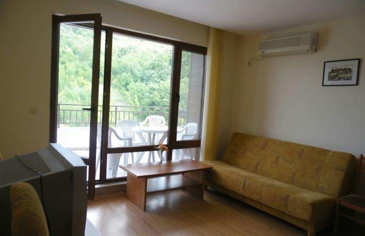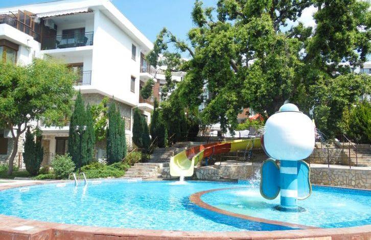 Квартира расположена в уютном комплексе с огороженной благоустроенной территорией. Услуги и удобства в комплексе: Большой плавательный бассейн; , Детский бассейн; , Детская игровая площадка; , Ресторан; , Сауна; , Фитнесс. м, состоит из прехожей, коридора, гостиной с кухней, одной спальни, балкона с видом на море и на горы. В стоимость входит меблировка и техника.