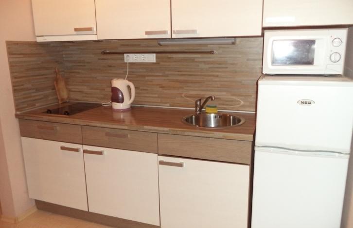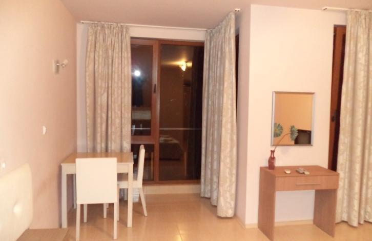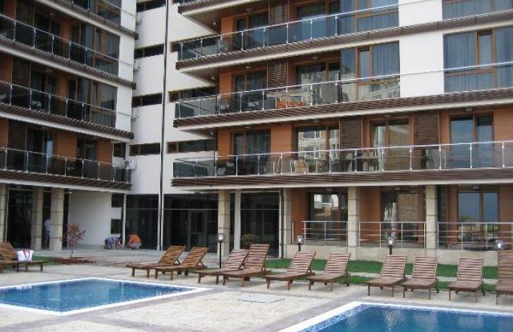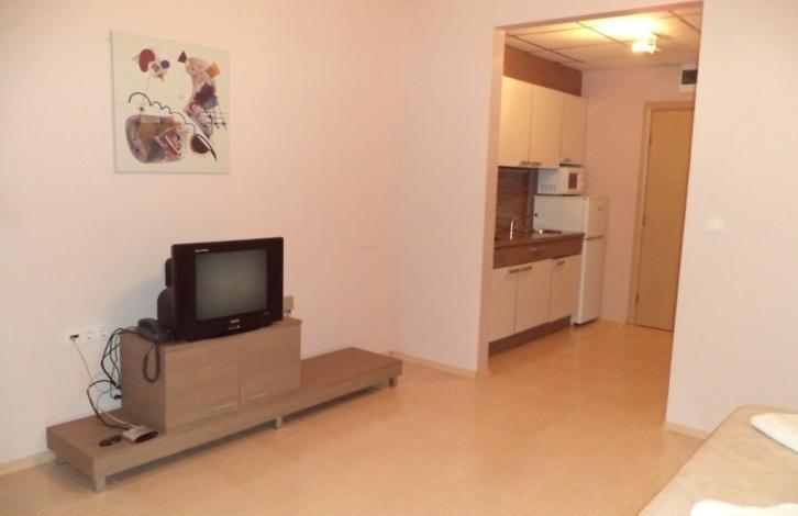 можно сочетать отдых на море и лечение грязями и рапой Поморийского озера. Студия находится на 3-м этаже шестиэтажного апарт-отеля и состоит из - прихожей (шкаф для одежды); - кухонного бокса (шкафы, электроплита, холодильник, СВЧ-печь, комплект посуды и др. ); - укомплектованной ванной комнаты; - гостиной (набор мебели для 2-х человек, телевизор, кондиционер и др. Студия готова для проживания и полностью укомплектована необходимой бытовой техникой, мебелью, посудой.