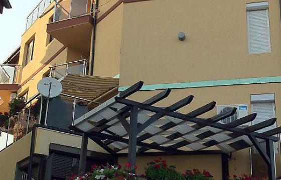 Здание имеет сад около 60 кв. м площадью. Это великолепно и уютно меблированный дворик с летней кухней и каменным барбекю, садовой мебелью, твердые деревянные беседки, ландшафтные клумбы с розами, виноградник и киви.