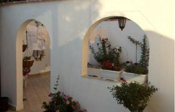 Коттедж очень напоминает семейный домик на море. Двор отделен от соседей стеной, выполненной в старом болгарском стиле с плиткой и деревом.