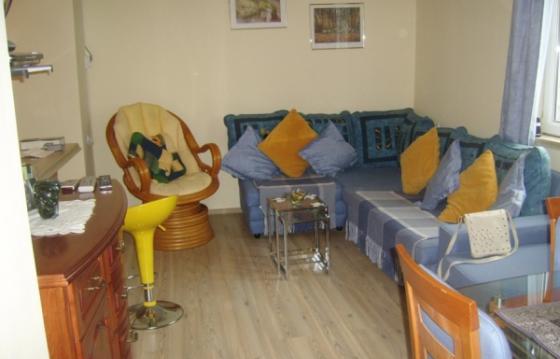 В огромной кухне и гостиной полы покрыты паркетом, на кухне - плиткой. Гостиная, как и остальная часть дома, полностью оборудована техникой, телевизором с последним дисплеем с плоским экраном и обставлены современной мебелью.