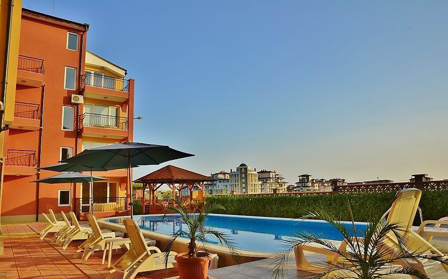 Комплекс располагает открытым бассейном, парковкой, охраной, интернетом, кабельным телевидением, детской площадкой, огороженной и озелененной территорией.