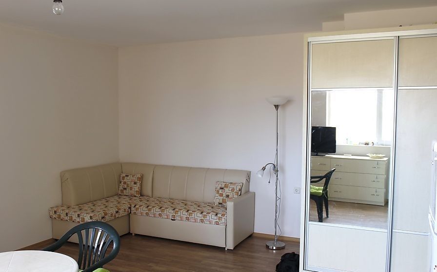 Квартира состоит из гостиной с кухней, одной спальни, коридора, ванной комнаты с туалетом, террасы и подвала-склада.