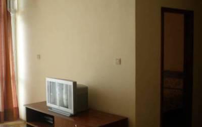 Гостиная: раскладной диван для 2 лиц и кресло, кондиционер, кабельное телевидение, DVD, керамические плитки на полу. Стенка со стороны бассейна из стекла с широким порталом к террасе.